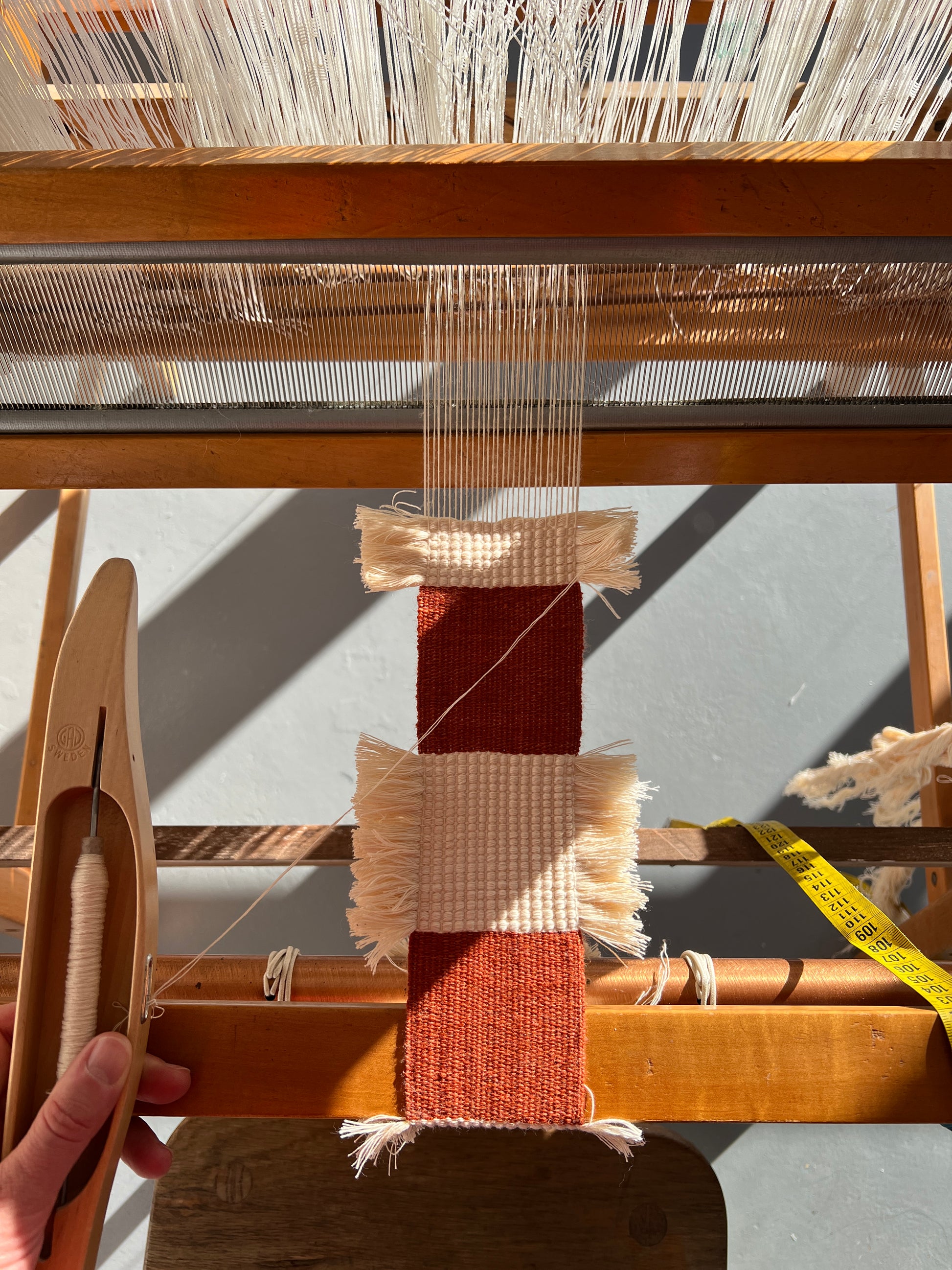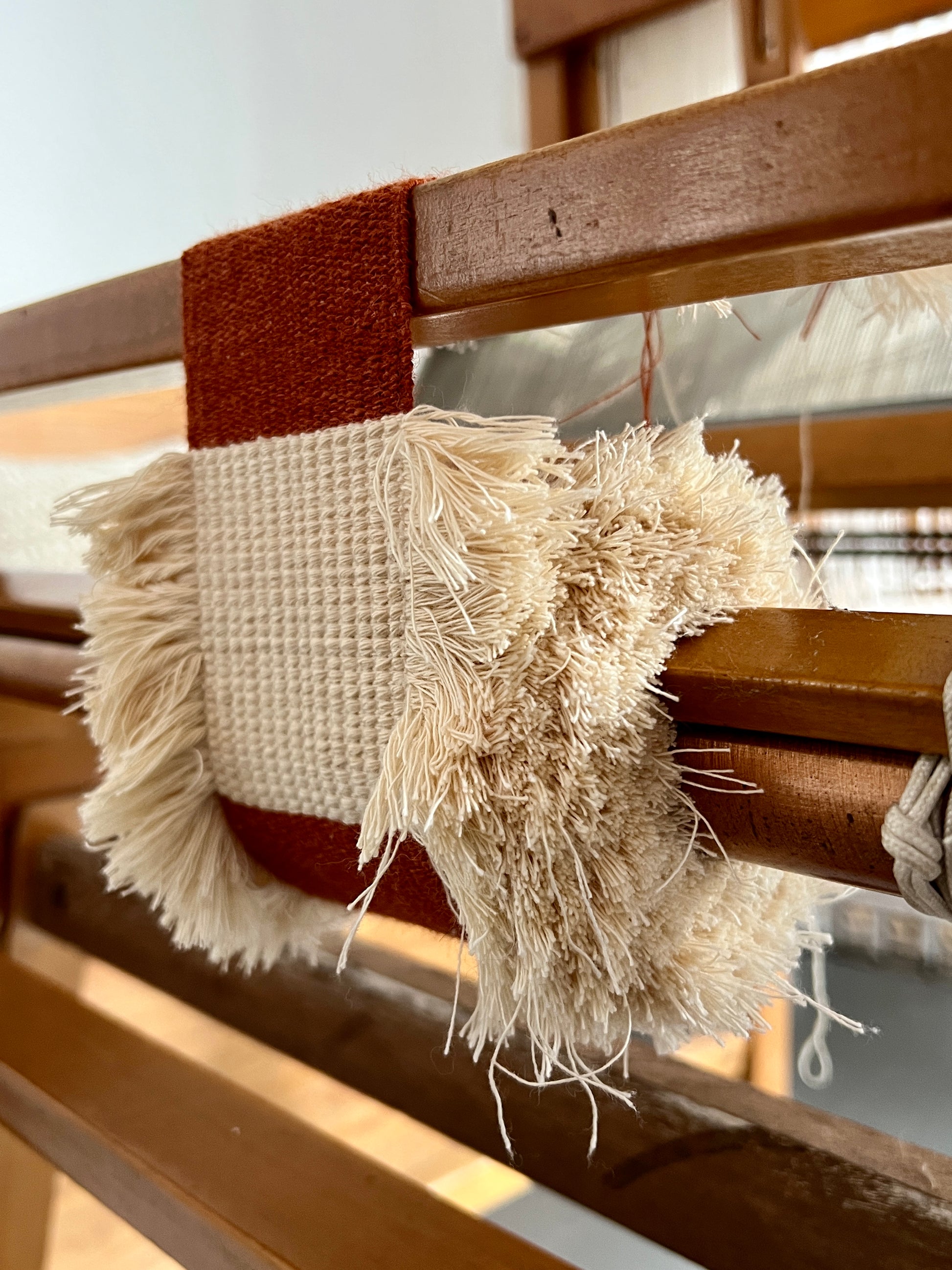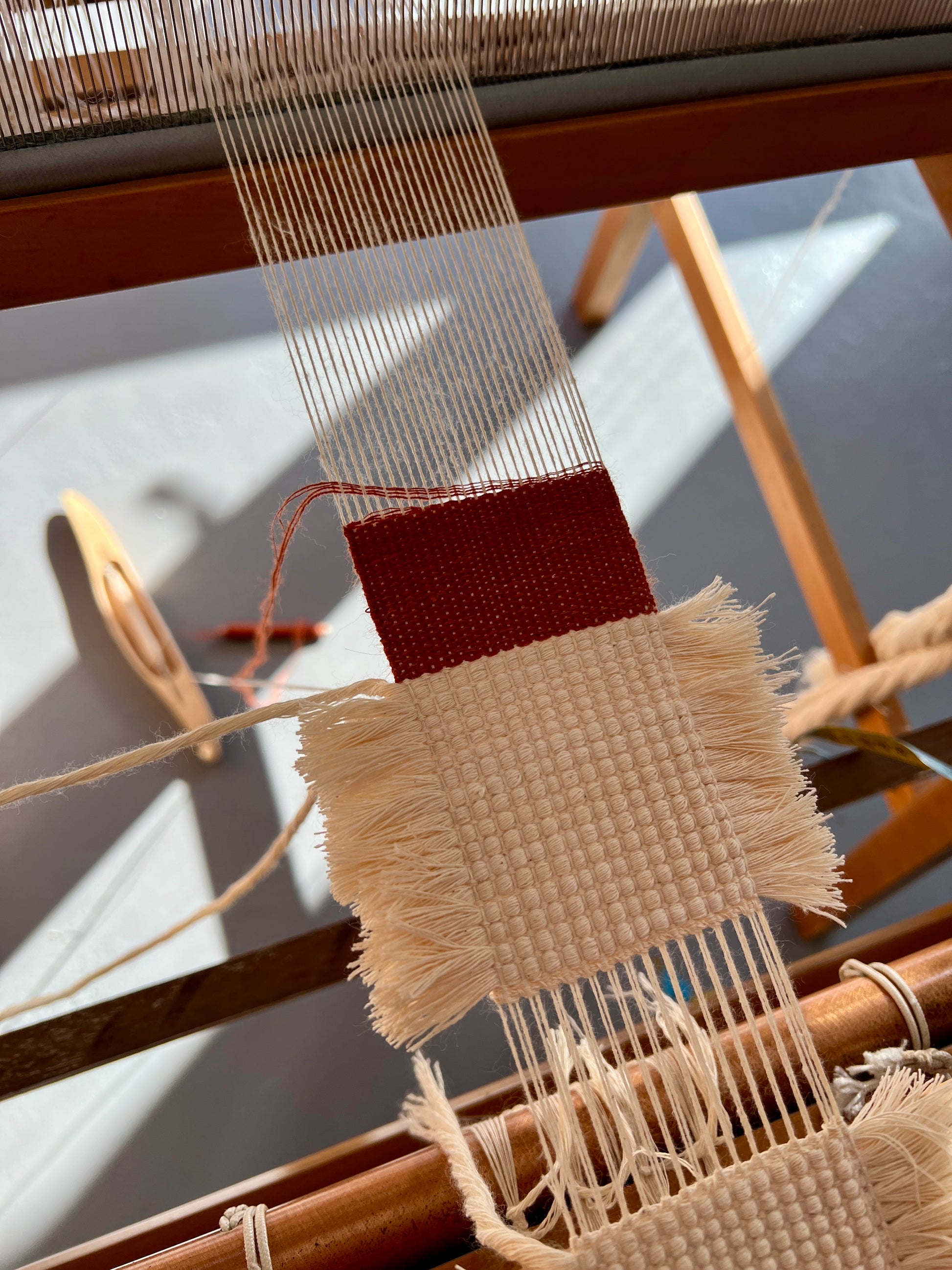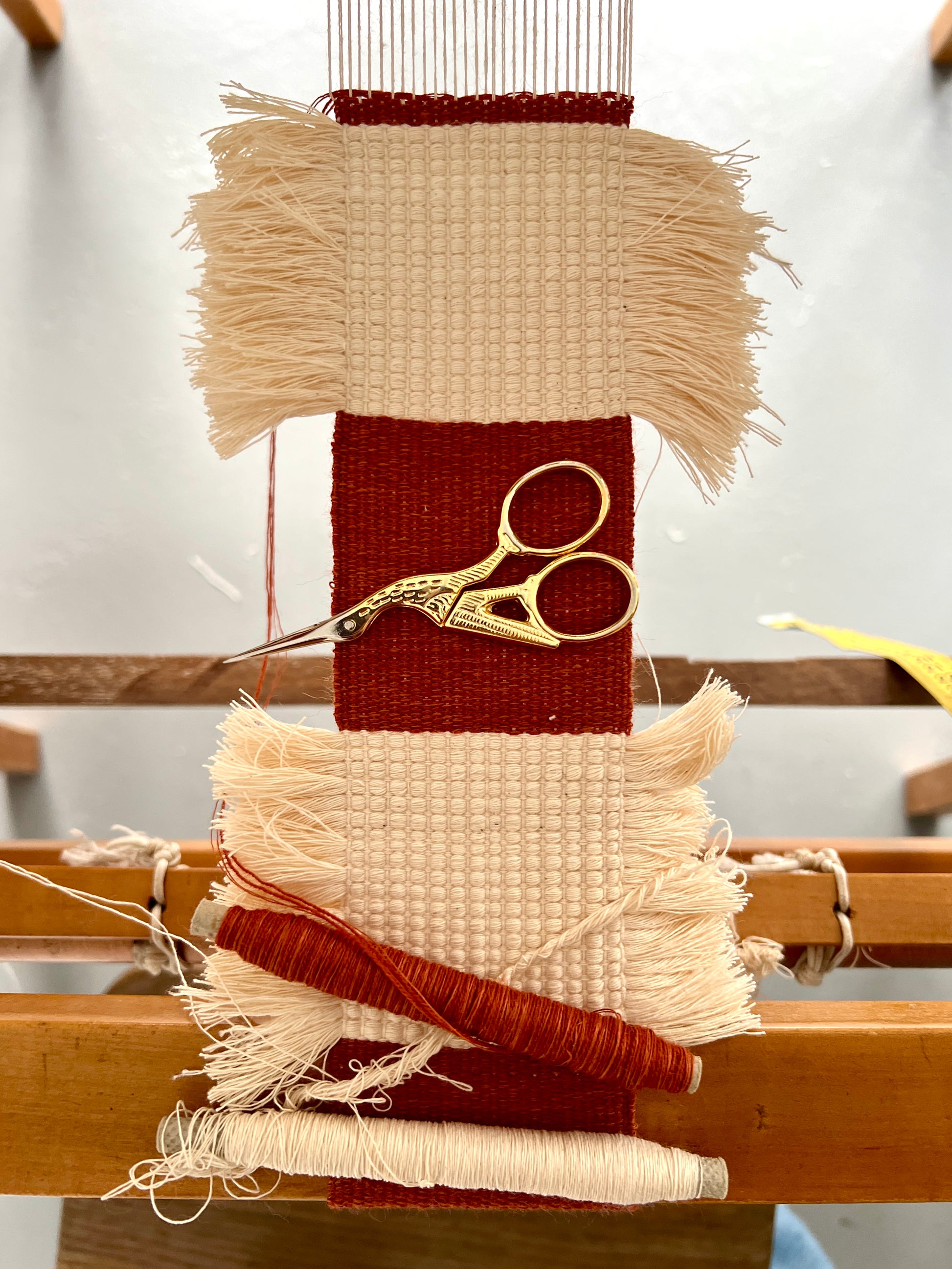 Woven on Essie, my small table loom, in July 2025