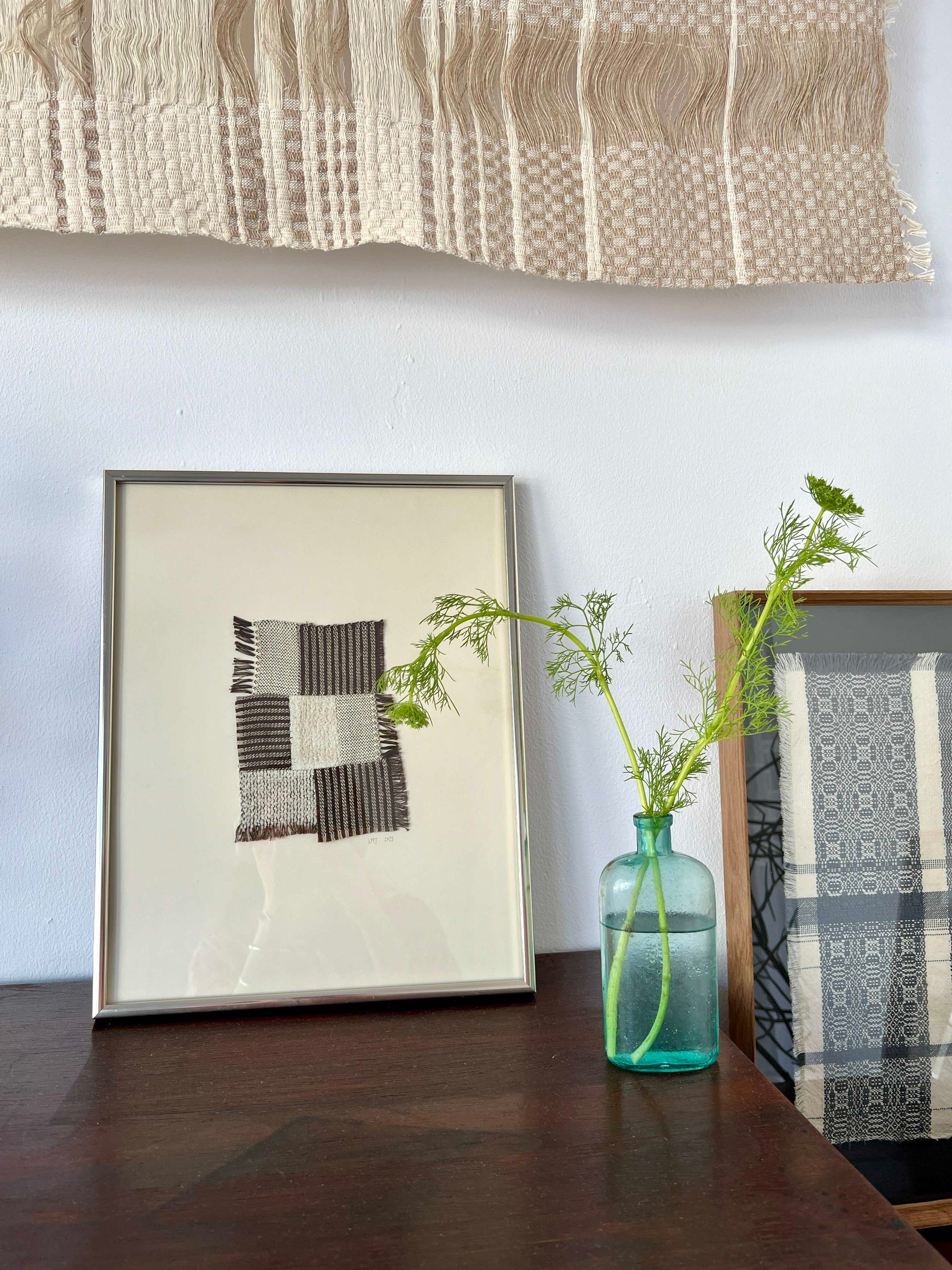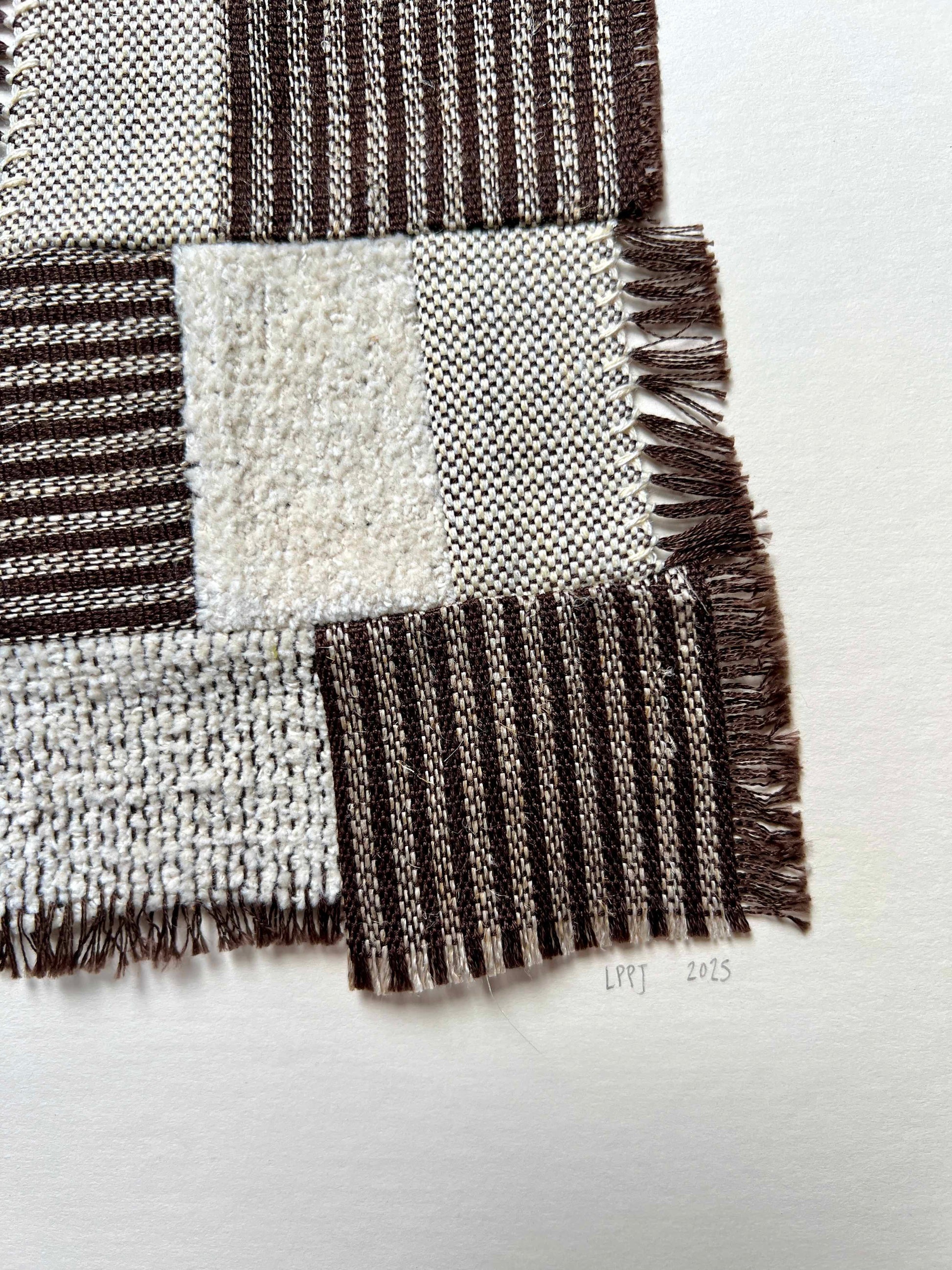 A small patchwork reminiscent of farmland seen from above, made from small scraps of my handwoven fabric (all linen and cotton).