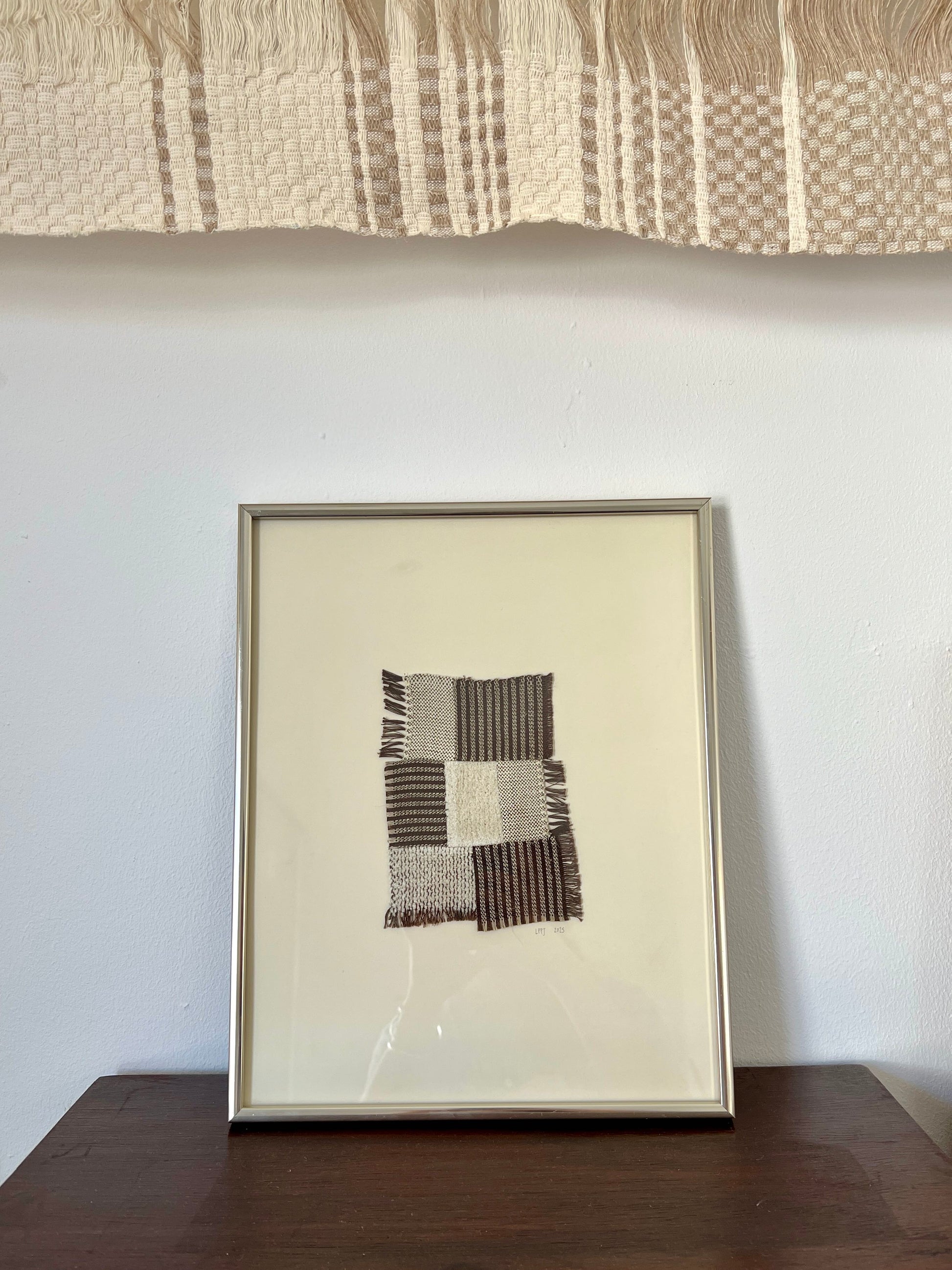 The sides are left unhemmed, and the piece is mounted onto an acid free cream board and displayed in a silver second hand frame (included).